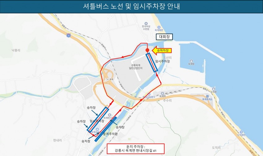 주차장 안내: 주수천 둔치 주차장(강릉시 옥계면 현내시장길 41) 및 옥계산업단지 도로변,
